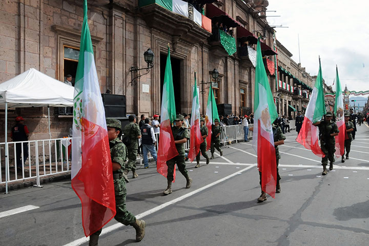 Durante dos horas y tres minutos, el gobernador del estado Salvador Jara Guerrero y más de 40 mil michoacanos, disfrutaron en el Centro Histórico de la capital michoacana, del tradicional desfile cívico-militar con motivo del 249 aniversario del natalicio del máximo héroe oriundo de esta tierra: Don José María Morelos y Pavón.