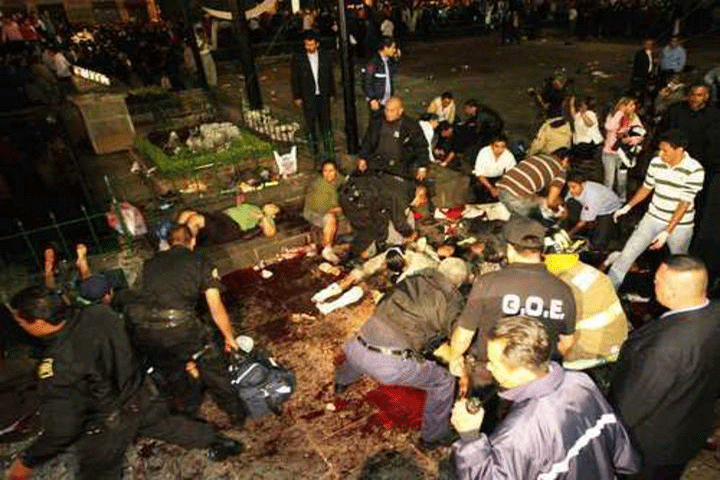 Era el primer atentado terrorista en México, dos granadas habían estallado en la plaza "Melchor Ocampo" y en la esquina de Madero y Quintana Roo.