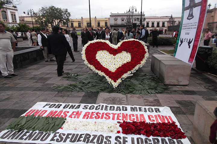 NOTICIAS 15/09/2014Desolado acto conmemorativo de los atentados del 2008Con poca presencia de familiares y afectados por los atentados terroristas del 2008 en Morelia, una ofrenda floral depositada por el gobernador sustituto, Salvador Jara Guerrero, sin intercambiar palabra con alguno de ellos se realizó el acto conmemorativo de los atentados terroristas del 2008.