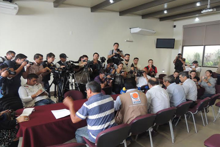 NOTICIAS 10/09/2014Suman 7 quejas por agresión a periodistas en lo que va del añoVarios colegas periodistas se reunieron la tarde de este miércoles con el ombudsman michoacano, José María Cazares Solorzano, para exponerle los abusos que la Policía ha cometido recientemente contra el gremio.