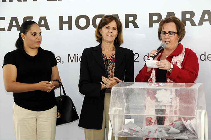La presidenta honoraria del Sistema para el Desarrollo Integral de la Familia (DIF) Michoacán,Catherine Rose Ettinger de Jara, en compañía de la directora general, Ana Luz Compeán Reyes Spíndola, efectuó el Sorteo 2014 "Para la Construcción de la Casa Hogar para Niños", donde Roberto Olvera del municipio de Indaparapeo, así como el Honorable Ayuntamiento de Taretan, resultaron ganadores de un vehículo Chevrolet Matiz 2014, cada uno.