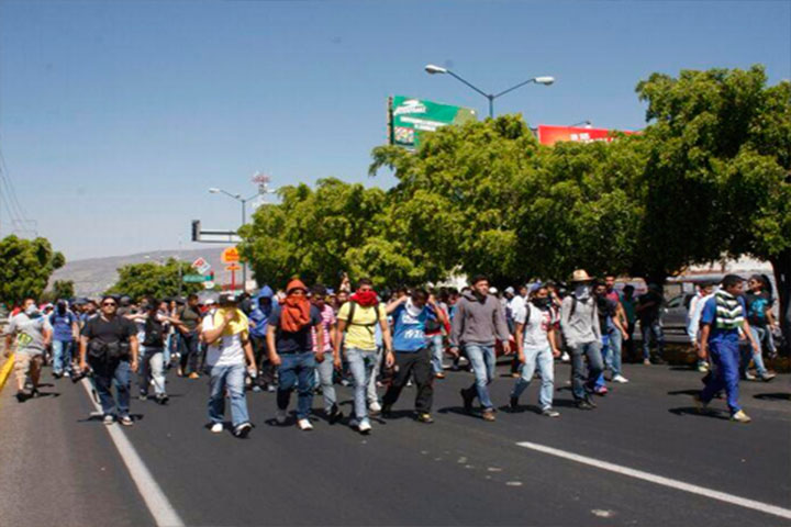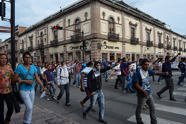 Paralizando la circulación de dos carriles del libramiento Sur, el grupo de estudiantes se dirige a la avenida Camelinas para después tomar la Ventura Puente, enseguida la avenida Madero para finalmente llegar al primer cuadro de la ciudad, donde se prevé realicen un mitin.