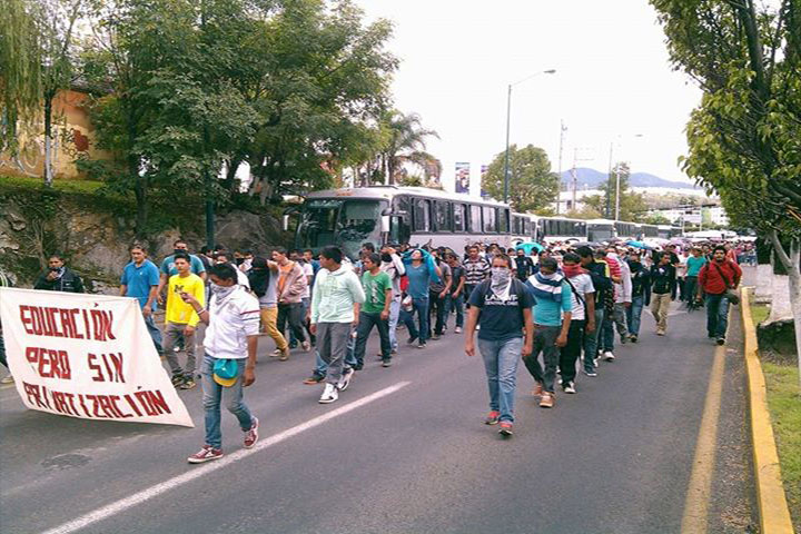 Minutos después de la hora anunciada (14 horas), un grupo de normalistas salió de Casa de Gobierno con rumbo al Palacio de Gobierno.