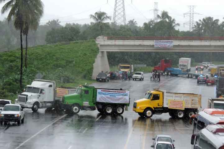 Integrantes de la Unión de Ingenieros Mineros del Pacífico, UNIMPA, bloquearon diversos puntos de la autopista Siglo 21 que comunica a la capital michoacana con el puerto de Lázaro Cárdenas, con la finalidad de exigir la reactivación de la industria Minera de Michoacán.