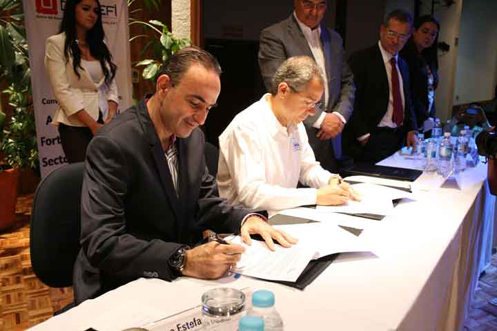 El acuerdo firmado por Jorge Estefan Chidiac, Director General de BANSEFI y Rafael Gamboa González, Director General de FIRA, en las oficinas generales de FIRA en esta ... Ver más...