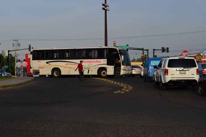 Cerca de las 11:00 horas comenzó el arribo de estudiantes normalistas quienes a bordo de 7 autobuses arribaron a las inmediaciones del monumento a Lázaro Cárdenas de esta capital para posteriormente dirigirse a la salida a Salamanca.