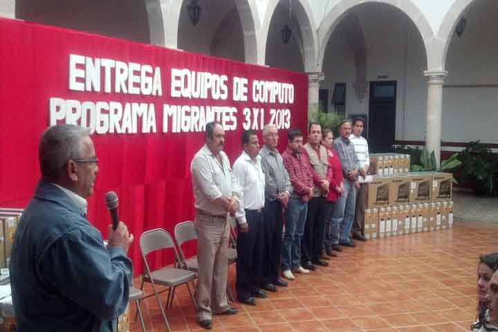 La Secretaría del Migrante estatal (Semigrante), a través del Programa 3X1 para Migrantes, realizo la entrega de 64 computadoras para equipar las aulas de medios de las diferentes escuelas de este municipio.