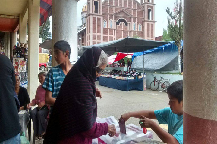 Lugar donde hiela, es la parte más alta de la Meseta Purhépecha, y donde los habitantes desde temprana hora salieron a emitir su voto; se instalaron 6 casillas y una especial en las instalaciones del Cecytem.