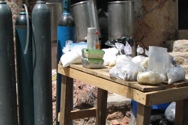 Un narcolaboratorio utilizado para la fabricación de la droga sintética conocida como crystal fue encontrado y destruido por el Ejército Mexicano en la comunidad de Felipe Carrillo Puerto "La Ruana", ubicada en este municipio, según se supo durante el trabajo noticioso.