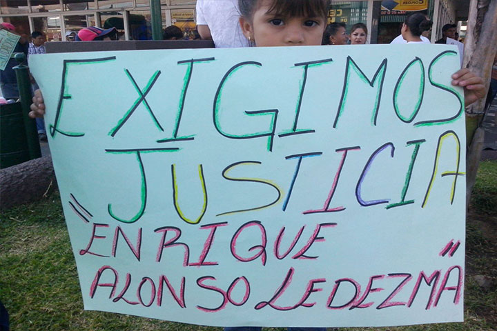 Familiares y amigos de la persona asesinada a golpes en el interior de la corporación policíaca Fuerza Ciudadana, se manifestaron con cartulinas y mantas en contra de los uniformados, por el homicidio del habitante de esta ciudad, quien según las autoridades fue golpeado dentro de la barandilla hasta darle muerte.