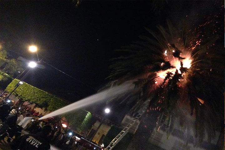 Un verdadero alboroto provocó un globo de Cantoya durante la celebración del Día de Muertos, en esta ciudad, luego de que cayera e incendiara por completo una palmera, en plena plaza Morelos, donde estaba la concurrencia reunida para los festejos; por fortuna, la situación no pasó a mayores y todo quedó en un susto, según lo atestiguado durante el trabajo periodístico.