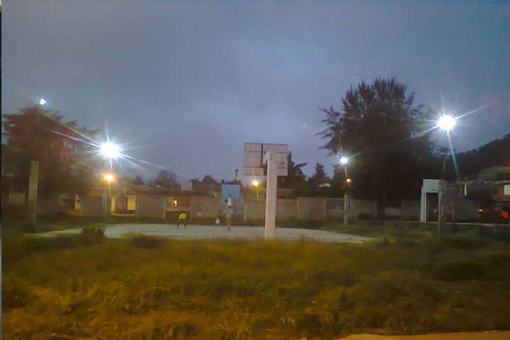 NOTICIAS 26/10/2014Instalan alumbrado en cancha de basquetbol en colonia de Ario
