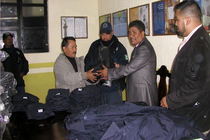 Luego de hacer un exhorto a los elementos de la Policía Municipal para que se conduzcan con respeto y honestidad, siempre cuidando su integridad y bienes, el alcalde Simón Vicente Pacheco hizo entrega de uniformes completos a los 26 elementos de esa corporación.