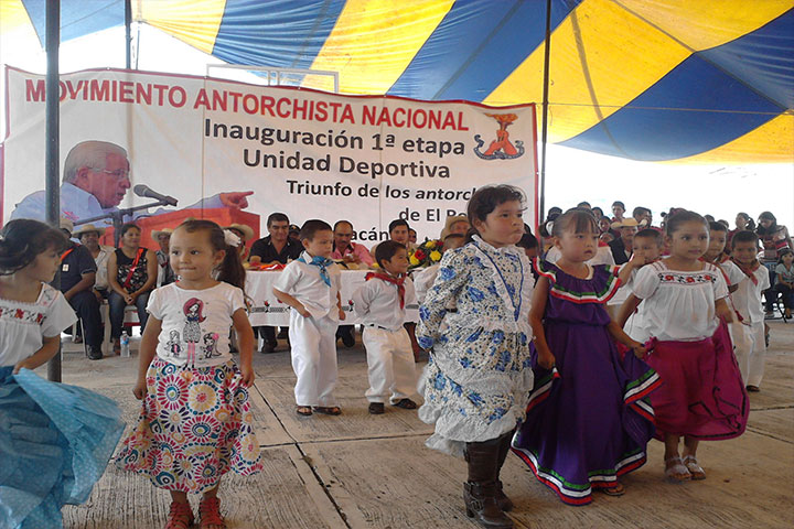 En un marco de alegría y satisfacción, el domingo pasado se reunieron los antorchistas de Benito Juárez y Susupuato para celebrar la inauguración de la primera etapa de la construcción de la unidad deportiva en El Rodeo, municipio de Benito Juárez. El evento estuvo encabezado por Alejandro Valencia, representando al Comité Estatal del movimiento y por Serafín Gallardo, dirigente regional de la organización.