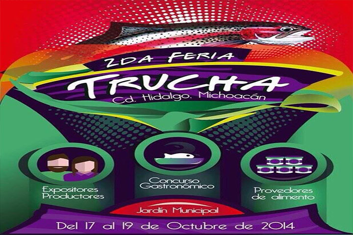 NOTICIAS 08/10/2014Hidalgo realizará su Segunda Feria de la Trucha ArcoírisDel 17 al 19 de octubre se desarrollará la segunda edición de la Feria de la Trucha, en el municipio de Hidalgo, con la finalidad de impulsar el desarrollo económico y el turismo en la región, dieron a conocer Zeus Rodríguez Miranda, director general de la Comisión de Ferias, Exposiciones y Eventos del Estado de Michoacán (Cofeeem) así como autoridades municipales, en conferencia de prensa.
