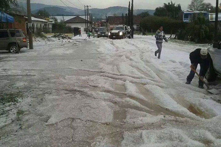 En Tocumbo, todo comenzó cerca de las 19:00 horas, y a consecuencia del temporal parecía incluso que había nevado, pues la grana formó un manto blanco por todas las vialida... Ver más...