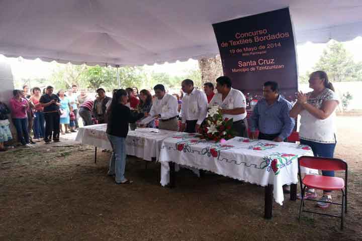 NOTICIAS 20/05/2014Premian a artesanas de Textiles de Algodón Bordados La Casa de las ArtesanÃas del Estado de Michoacán (Casart), en coordinación con el Fondo Nacional para el Fomento de las ArtesanÃas (Fonart) y el Ayuntamiento de Tzintzuntzan, realizó el XIV Concurso Artesanal de Textiles de Algodón Bordados, en la comunidad de Santa Cruz, en que participaron 64 artesanas, con 122 piezas inscritas, donde se repartieron 41 premios que suman una bolsa de 80 mil pesos.