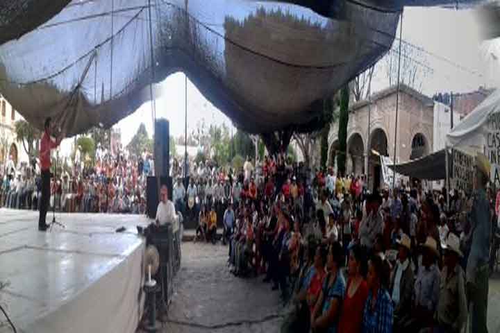 A 24 horas de que abandonara el Centro de Reinserción Social David Franco RodrÃguez en donde permaneció recluido durante dos meses y cinco dÃas acusado de doble homicidio que no le pudieron comprobar, Hipólito Mora fue recibido en su pueblo natal, la tenencia de Felipe Carrillo Puerto, La Ruana, por todos sus habitantes y con música de viento.