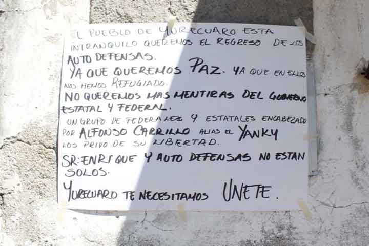 Pobladores de esta localidad de Yurécuaro pidieron el apoyo de las fuerzas militares, pues quedaron indefensos y a merced de la delincuencia tras la detención de los 19 integrantes de los grupos de auto defensas acusados de la muerte del alcalde de Tanhuato, Gustavo Garibay García.