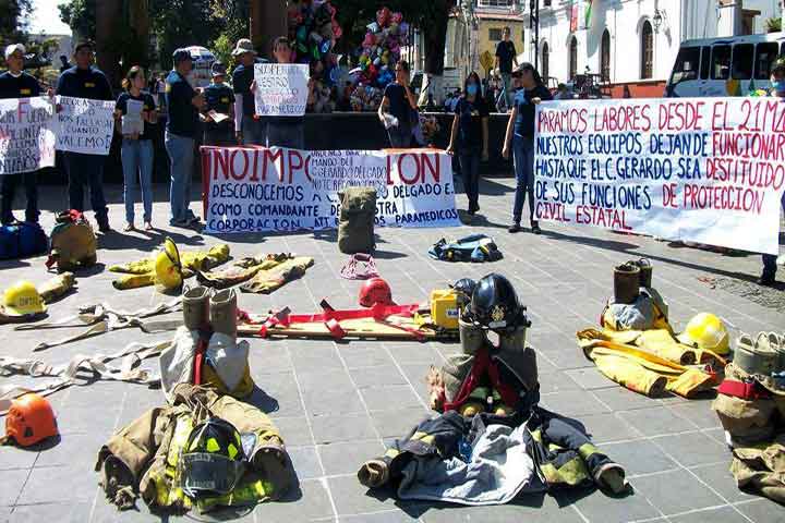 Un grupo de voluntarios de Protección Civil del Estado, se han manifestado públicamente una vez más, en contra de la designación de Gerardo Delgado Estrada, como comandante regional de esa corporación con sede en esta ciudad de Uruapan.