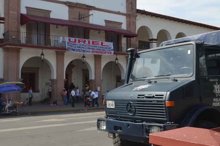 El día de hoy, autoridades estatales y federales, tuvieron conocimiento de una movilización de civiles en el Palacio Municipal del Ayuntamiento de Apatzingán, para plantear diversas exigencias ante la autoridad municipal.