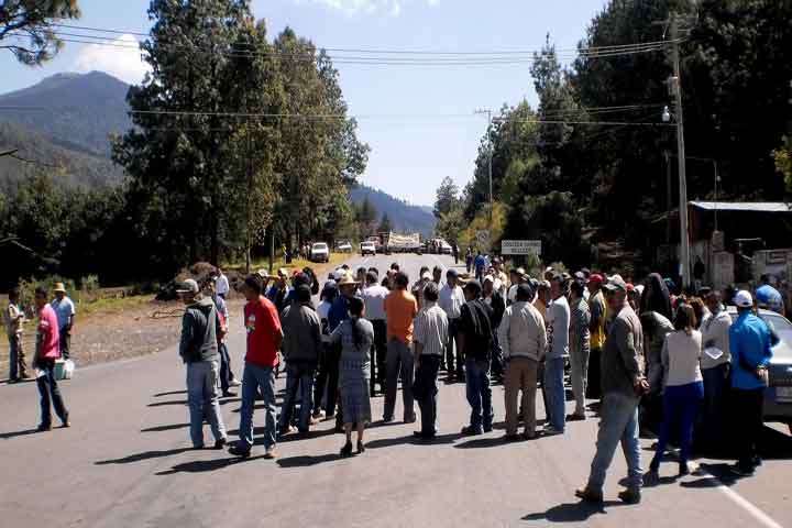 Profesores y personal administrativo, así como padres de familia de la Escuela Secundaria Intercultural y Bilingüe de la comunidad indígena de Angahuan, mantienen bloqueada la carretera estatal desde las cuatro de la madrugada, demandan pago de sueldos desde hace dos años y construcción del plantel ya que cuenta solamente con dos galeras.