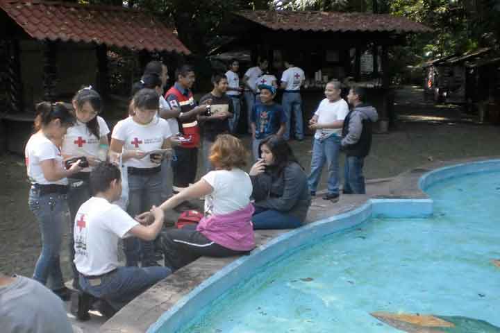 Un grupo de 23 alumnos de la Escuela de Técnicos en Urgencias Médicas del nivel básico (TUM-B) de la Cruz Roja, delegación Uruapan, llevó a cabo este domingo una labor social entre el personal que labora en el Parque Nacional "Barranca del Cupatitzio", como a visitantes, como parte de su preparación profesional.