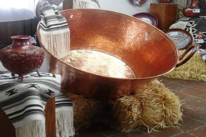 Ubicada en la región Lacustre, Santa Clara del Cobre es la localidad donde su actividad artesanal es la base de la economía y en todas las calles del centro de la ciudad se pueden encontrar en venta diversos y creativos artículos hechos a base de este metal; desde cazos, jarrones, centros de mesa y figuras decorativas, hasta tinas de baño y joyería.