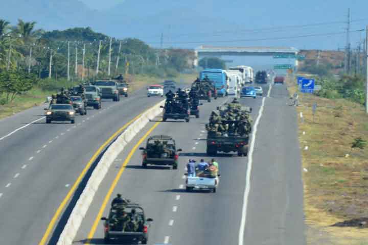 Desde la tarde del pasado miércoles, alrededor de 18 camiones tipo Mercedes Benz y 13 camionetas Cheyenne de la milicia llegaron a esta población, seguidas de tres autobuses y una ambulancia de la Policía Federal (P... Ver más...
