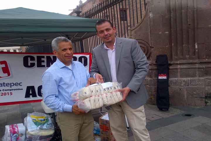El Ayuntamiento de Tepalcatepec instaló en la Plaza Benito Juárez de Morelia, un centro de acopio para los habitantes afectados de esta demarcación terracalenteña, por los efectos de la tormenta tropical Manuel.