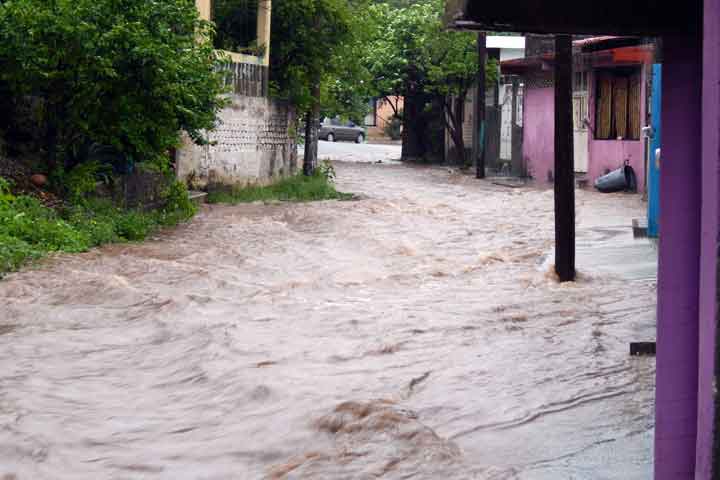 A consecuencia de las fuertes lluvias registradas durante este fin de semana, con motivo de la tormenta tropical "Manuel", se reportó el desbordamiento del arroyo Achotán en Coahuayana.