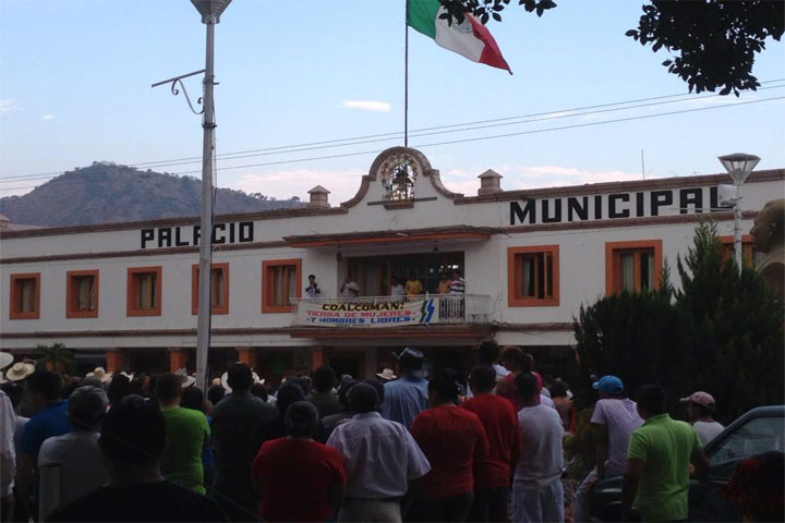 Con alrededor de 3 mil personas reunidas en la plaza principal de esta ciudad de Coalcomán, el presidente municipal Rafael García Zamora informó que la Policía Comunitaria es la que ha detenido a la gente armada que asolaba la región y no el Ejército, a quien le pidió realizar más operativos, pues agregó que el pueblo sigue insistiendo en tener más seguridad, para lo cual se debe arrestar a los maleantes.