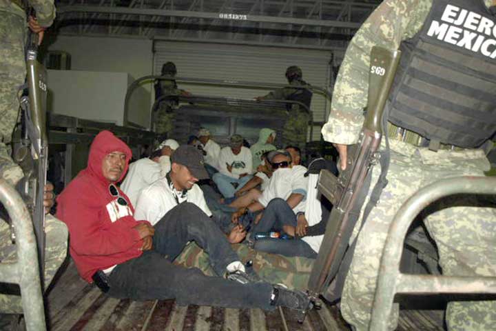 Otros 17 supuestos policías comunitarios de la tenencia de Felipe Carrillo Puerto, La Ruana, en Buenavista, Tomatlán, fueron detenidos por el Ejército Mexicano en poder de fusiles de asalto, escopetas, subametralladoras y pistolas.