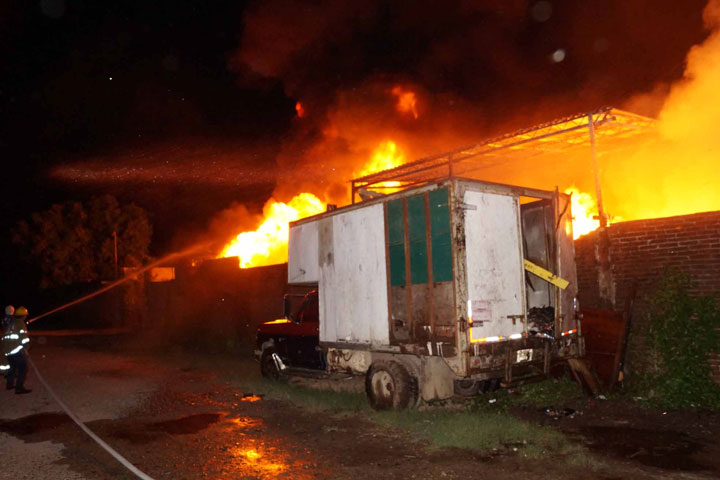 Un voraz incendio acabó con una empresa recicladora ubicada a un costado del Hospital General de Lázaro Cárdenas, así mismo se calcinaron dos camionetas que se encontraban estacionadas al interior de las instalaciones siniestradas la madrugada de este viernes.