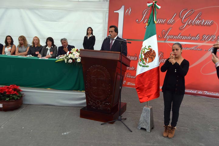 El Profesor Benjamín Paramo García, Presidente Municipal de esta localidad de Tarímbaro, rindió su primer informe de actividades al medio día de este viernes, en un marco lleno del beneplácito de cientos de vecinos de esta citada municipalidad quienes se mostraron sumamente satisfechos con las acciones realizadas por la presente administración.