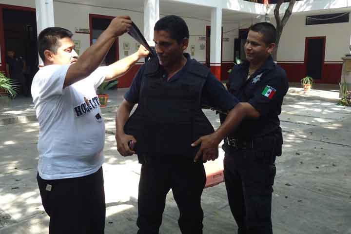 Con una inversión total de 12 mil 500 pesos, la alcaldesa de Huetamo, Dalia Santana Pineda, entregó 20 chalecos antibalas a la gendarmería local.