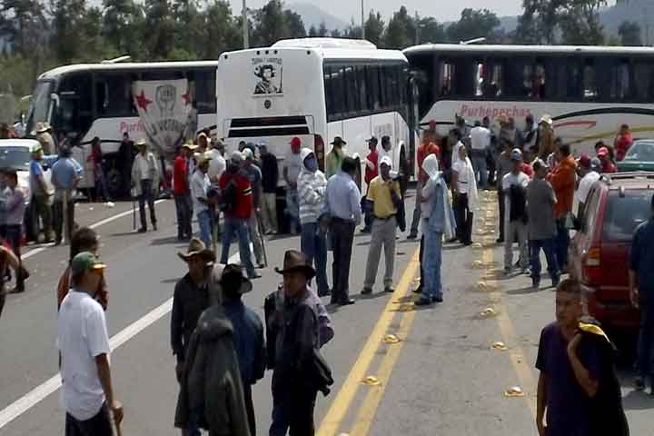 Hombres de campo, mujeres indígenas y hasta niños, se han unido a la lucha por la liberación de los normalistas detenidos y en contra del desalojo policial de sus planteles; armados con herramientas de trabajo, piedras, palos y machetes, mantienen un bloqueo carretero a cinco kilómetros de Uruapan con dirección a Paracho.