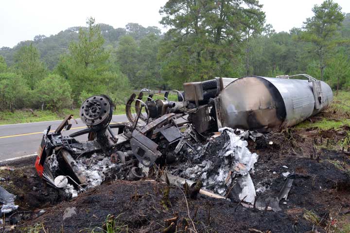 NOTICIAS 28/08/2012Se vuelca pipa en Quiroga, arde cabina tras accidente Un tráiler utilizado para transportar aceite vegetal de grado alimenticio, el cual iba con su contenedor vacío, se volcó al salir de una curva y cayó a una cuneta, donde la cabina se incendió y quedó totalmente calcinada.