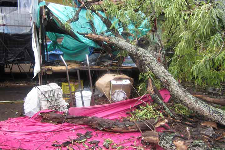 Una tromba que azotó por más de 20 minutos la ciudad de Zamora, provocó encharcamientos en varias colonias, así como la caída de un árbol en pleno corazón del mercado Hidalgo, el cual lesionó a dos comerciantes al derrumbarse.