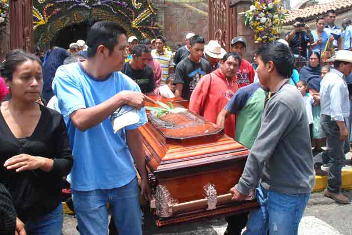 NOTICIAS 20/04/2012Se aprestan a sepultar a otro de sus muertosA lo lejos se escuchan las campanas del templo de Cherán, decenas de familiares y amigos se arremolinan alrededor del féretro de Santiago, un hombre bueno dicen todos, un hombre que era ejemplo de padre de familia, de buen esposo, que asistía cotidianamente a misa, que ayudaba al templo, que se dedicaba formalmente a producir velas junto con su esposa, un hombre que sin que existiera una recompensa económica fue de los primeros que asistió h... Ver más...