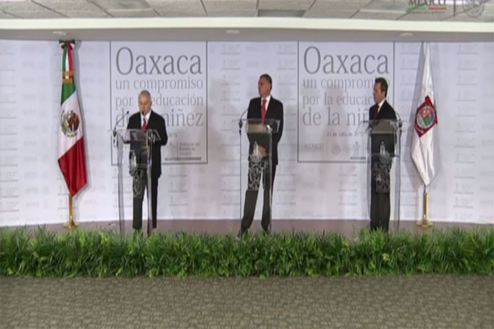 NOTICIAS 21/07/2015Gobierno federal apoya a Oaxaca en transformación educativaEl gobierno de la República respalda, acompaña, apoya y se coordinará con Oaxaca para aplicar las medidas anunciadas esta mañana con el objetivo de aplicar la reforma educativa en esa entidad.