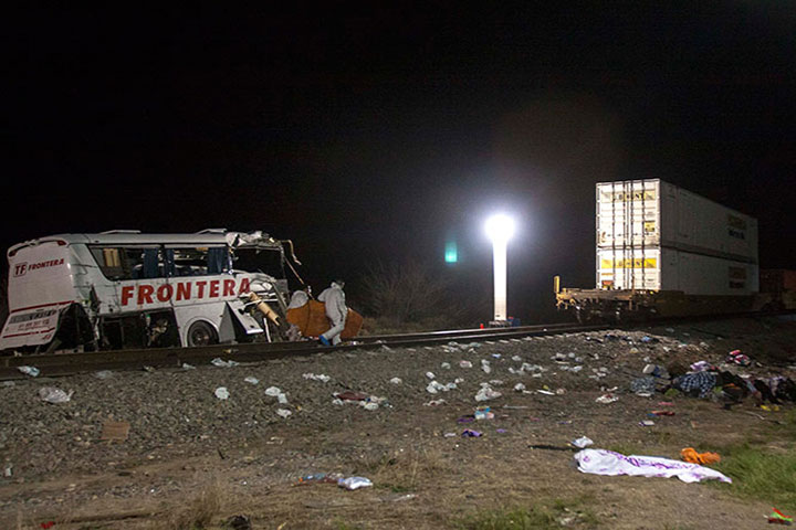 NOTICIAS 14/02/201520 muertos tras choque entre autobus y tren en NLUn saldo de 20 muertos y 31 heridos fue el saldo que arrojó el choque la víspera, de un autobús contra un tren en el municipio de Anáhuac, al norte del estado, confirmó esta mañana el alcalde de esa población, Desiderio Urteaga.