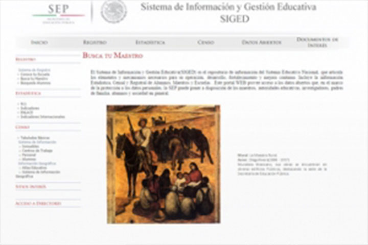 NOTICIAS 08/12/2014SEP publica portal de educación básicaLa Secretaría de Educación Pública (SEP) puso en operación el Portal del Sistema de Información y Gestión Educativa (SIGED), que contiene la información estadística y censal de alumnos, trabajadores y escuelas de educación básica del país.