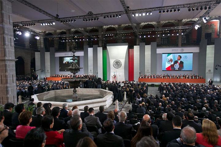 Ante gobernadores, gabinete legal y ampliado, legisladores, dirigentes partidistas, cuerpo diplomático acreditado en el país e invitados, el mandatario federal fue arropado con un fuerte aplauso.