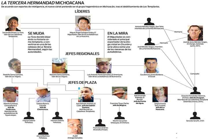 NOTICIAS 06/05/2014La Tercera Hermandad, nuevo cártel en Michoacán: Excelsior Integrantes de grupos de autodefensa de Michoacán y células de narcotraficantes dieron origen a un nuevo cártel: La Tercera Hermandad o Los H3, según documentos de seguridad nacional.