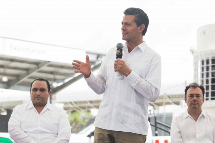 NOTICIAS 08/05/2014Cierran garitas en Quintana RooEn el marco del cierre definitivo de cuatro garitas en el estado de Quintana Roo, el Presidente Enrique Peña Nieto reafirmó el compromiso del Gobierno de la República de invertir 1.2 billones de pesos, es decir 1.2 millones de millones de pesos, del Programa Nacional de Infraestructura 2014-2018, en la región sur-sureste del paÃs.