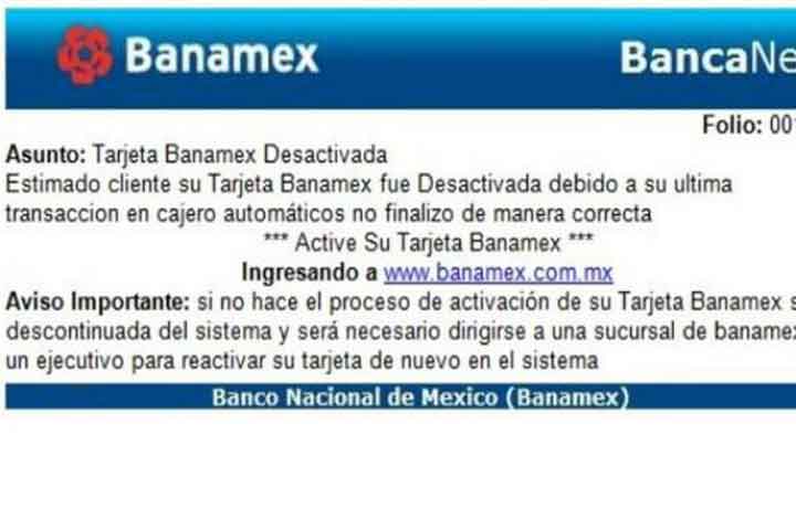 NOTICIAS 25/04/2014Alertan sobre correo apócrifo de Banamex La Comisión Nacional para la Protección y Defensa de los Usuarios de Servicios Financieros (Condusef) emitió una nueva alerta de un correo falso que circula por la red, supuestamente enviado por Banamex.