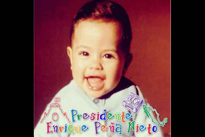 La serie de imágenes la encabeza la fotografía del titular del Ejecutivo Federal. Se trata de una imagen de cuando Peña Nieto estaba por cumplir un año.