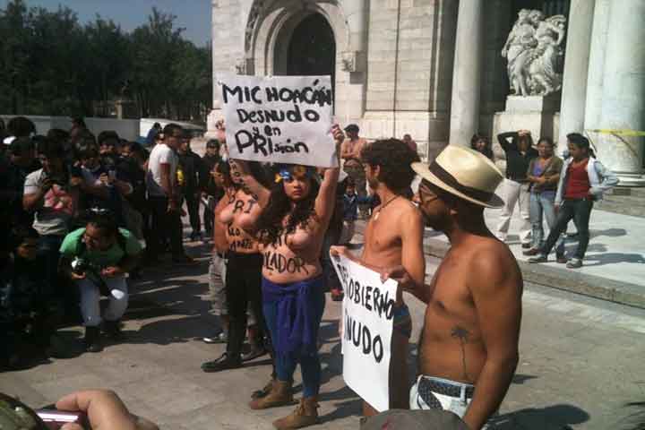 NOTICIAS 18/01/2014Protestan desnudos en apoyo a autodefensas
