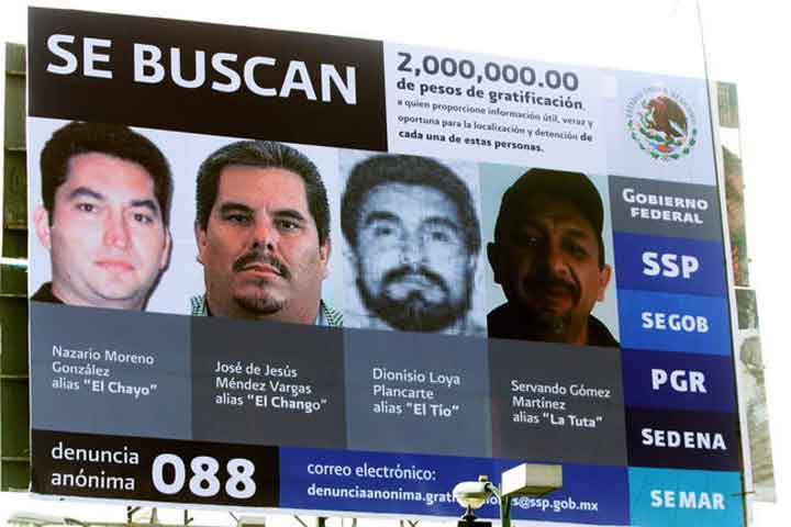 Desde el año 2010, la Procuraduría General de la República (PGR) busca la captura de 17 integrantes del grupo delictivo "Los Caballeros Templarios", incluyendo líderes, operadores y hasta sicarios, por los cuales mantiene la entrega de recompensas que van de los 3 a los 30 millones de pesos, a cambio de información que facilite su detención.
